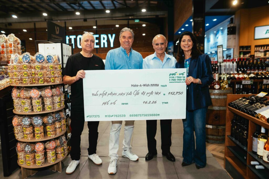 חגי שלום מנכ"ל ובעלים קבוצת  טיב טעם  וההנהלה הבכירה, ביניהם: יוסי שליו, סמנכ"ל סחר ושיווק ואביבית לוי-נעים, מנהלת מכירות ושיווק, ערכו אמש טקס חגיגי בסניף הדגל בנתניה לטובת עמותת Make-A-Wish Israel  במטרה להגשים משאלות לילדים המתמודדים עם מחלות מסכנות חיים.